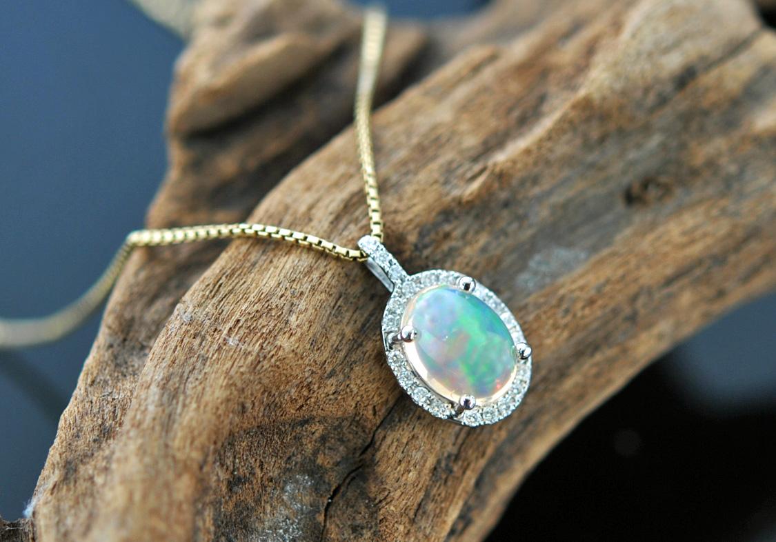 丸みのオパールの形状にあわせて、丸みのペンダントをデザイン提案したところ、気に入っていただけました。