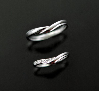 やや細身でV字のシルエットのデザインがお好みだった奥さま。V字にもさまざまなラインがありますが、多くのバリエーションの中から、奥さまはご覧のシルエットのV字リングを選ばれました。