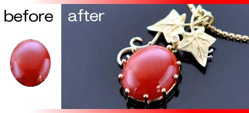 かなり古いサンゴリングを持参されたF.Hさま。長い年月を経て、サンゴの表面がくもっていたので、まずは研磨職人によるツヤ出し加工から取り掛かりました。