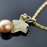 金メッキがかけられた合金にパールが取り付けられたものが、元々のデザインでした。だいぶ以前に海外で購入してきたというペンダントをご持参のI.Yさま。