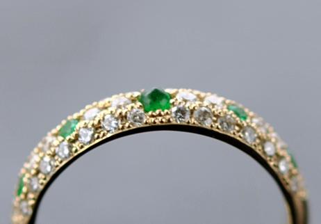 エメラルドをアクセントにして、ダイヤモンドをしきつめたリングをデザイン。