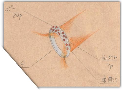 【K18wg ルビー リング】デザイン画