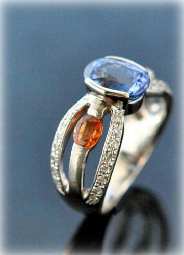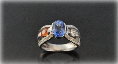 斬新なご要望に、オレンジ色のサファイアを手配して、リングをお仕立て。