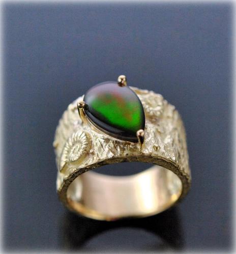 美しい光沢をもつアンモライトを持参のお客様が、幅広のデザインでリングをご要望。